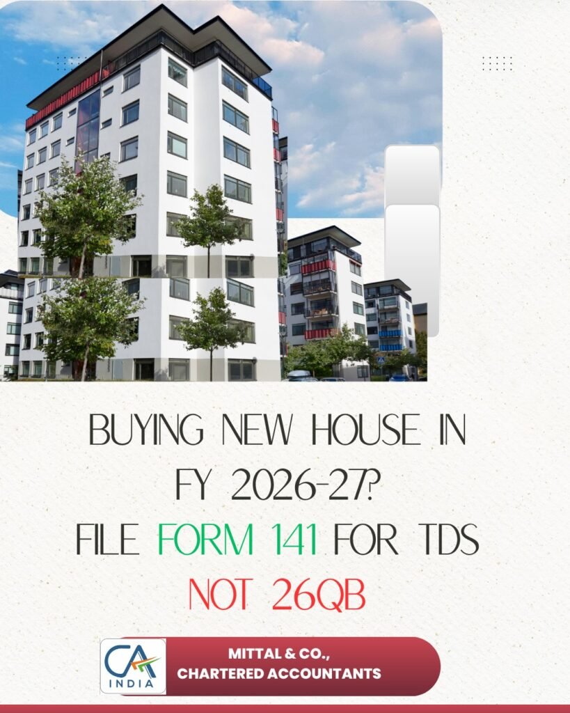 🏠 Introduction Buying a new house? Starting 01 April 2026, the Income Tax Department has introduced Form 141 as a consolidated challan-cum-statement for TDS reporting. This replaces Form 26QB, which was earlier applicable for property transactions. Now, all PAN-based TDS reporting is streamlined under Form 141. 📄 What is Form 141? Form 141 is a […]