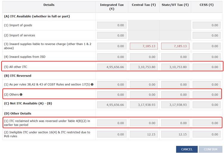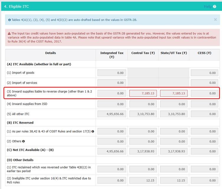 2. Reduce the ITC claimed: You can reduce ₹5,000 from the RCM ITC in Table 4A(2) or Table 4A(3) for the same period, if RCM ITC is available more than ₹5,000 in current period.