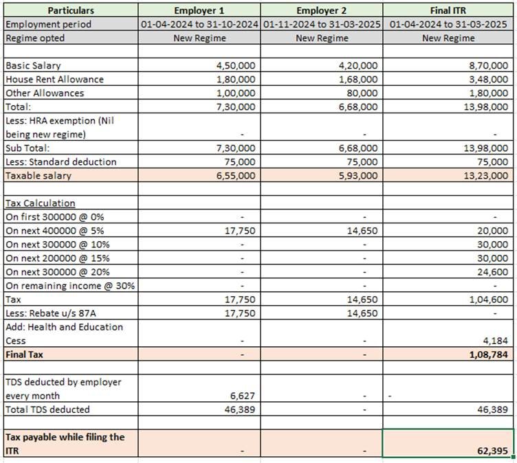 Additional income tax payable in case of a job change arises mainly due to fragmented salary information, duplicate deductions, and independent TDS calculations by employers. This is a compliance issue rather than a tax demand anomaly.